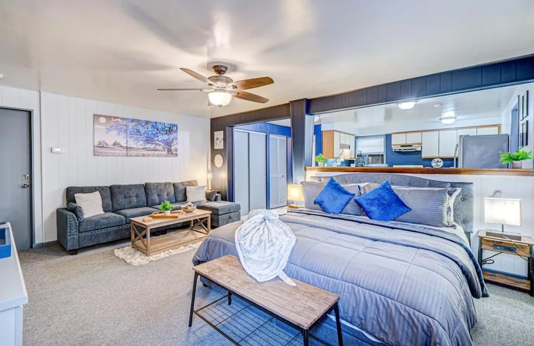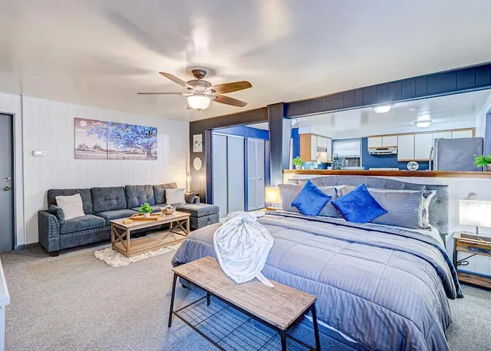 Möbliert mit einem Schreibtisch, bietet das 600 m² große Remodeled Studio Condo Family Friendly Area ein Bügeleisen/Bügelbrett und eine Klimaanlage sowie WLAN und ein Fernsehen mit mehreren Kanälen für einen wirklich angenehmen Aufenthalt. In diesem Apartment gibt es 1 Badezimmer. Außerdem gibt es hier eine Badewanne.